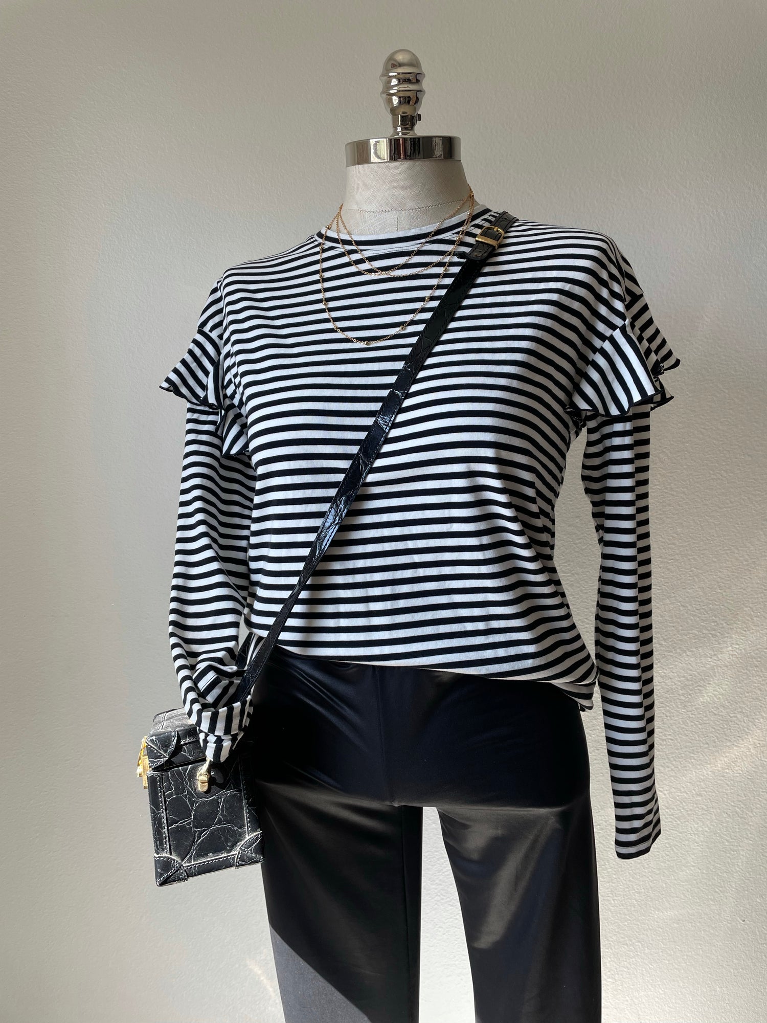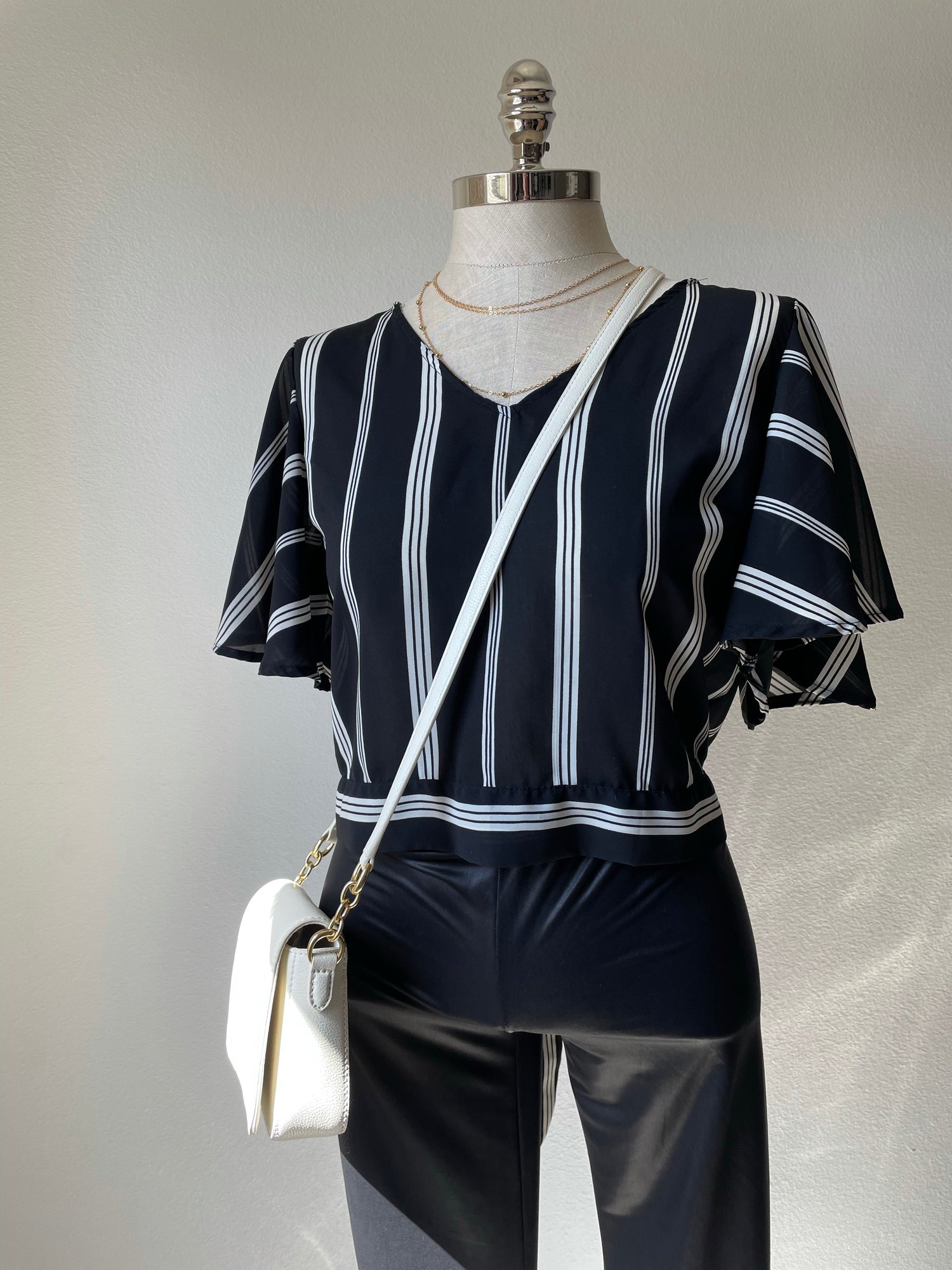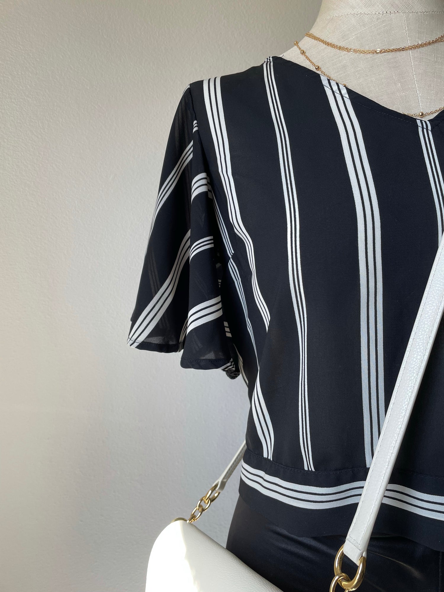 Black and cream short sleeve blouse. Tag says large but best for medium.