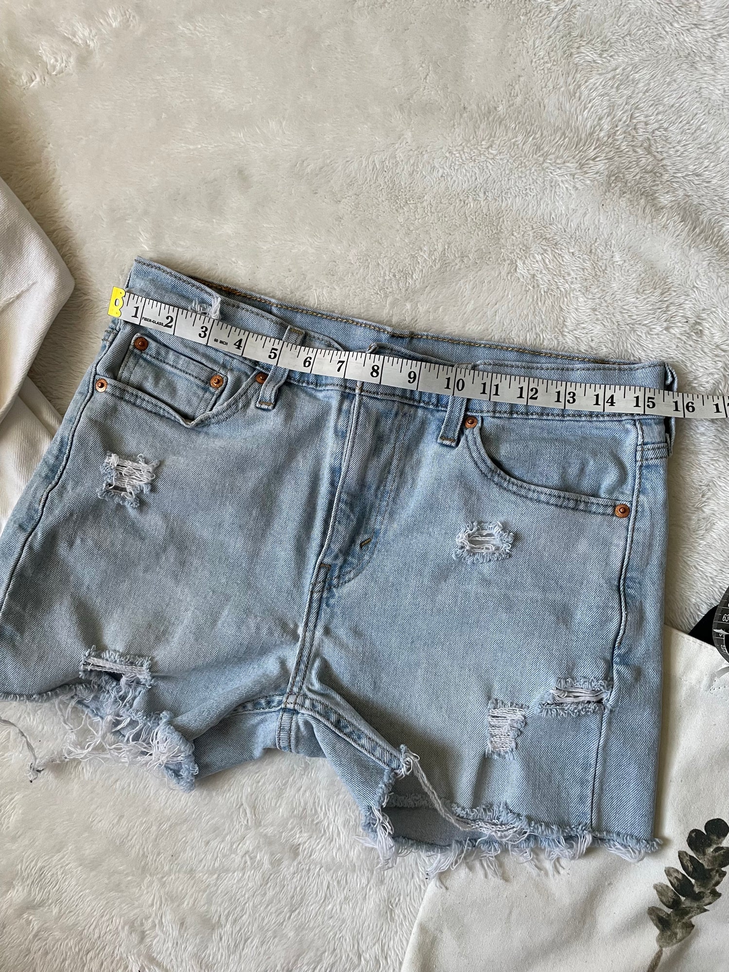 Waist-15.5". Rise-10'. Inseam-3". Length- 12".